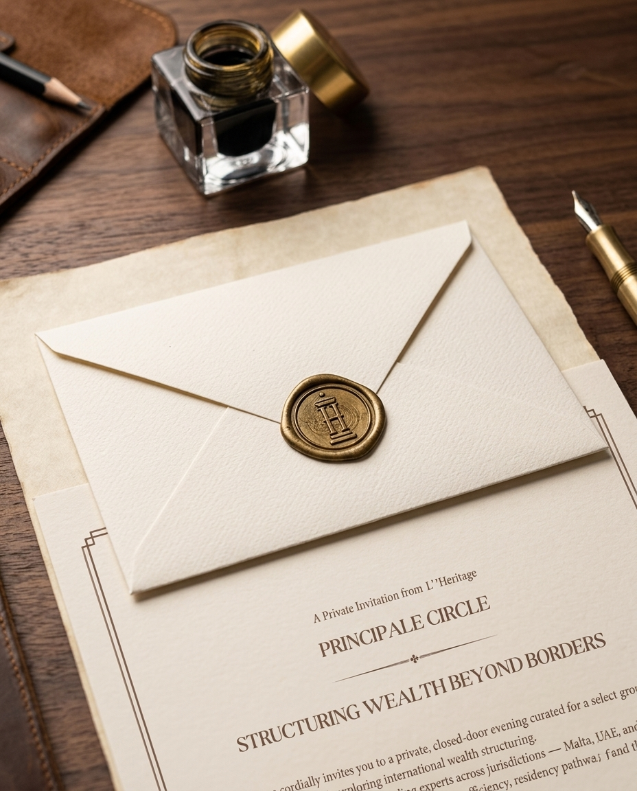 L’ Heritage cordially invites you to a private, closed-door evening curated for a select group of families and principals exploring international wealth structuring.This gathering brings together leading experts across jurisdictions — Malta, UAE, and cross-border advisory — to share perspectives on tax efficiency, residency pathways, and the long-term preservation of family wealth.